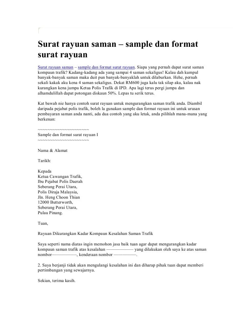 Surat rasmi rayuan pengurangan kompaun · contoh surat permohonan caruman lewat bayar perkeso (fclb) via www.scribd.com · surat rasmi rayuan saman .