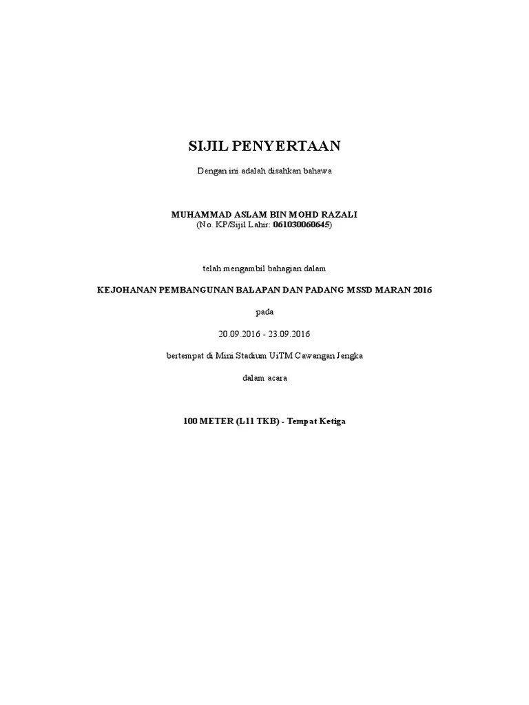 Using these printable certificate templates for . Muhammad iyas bin ilias · sijil penyertaan a4 template.